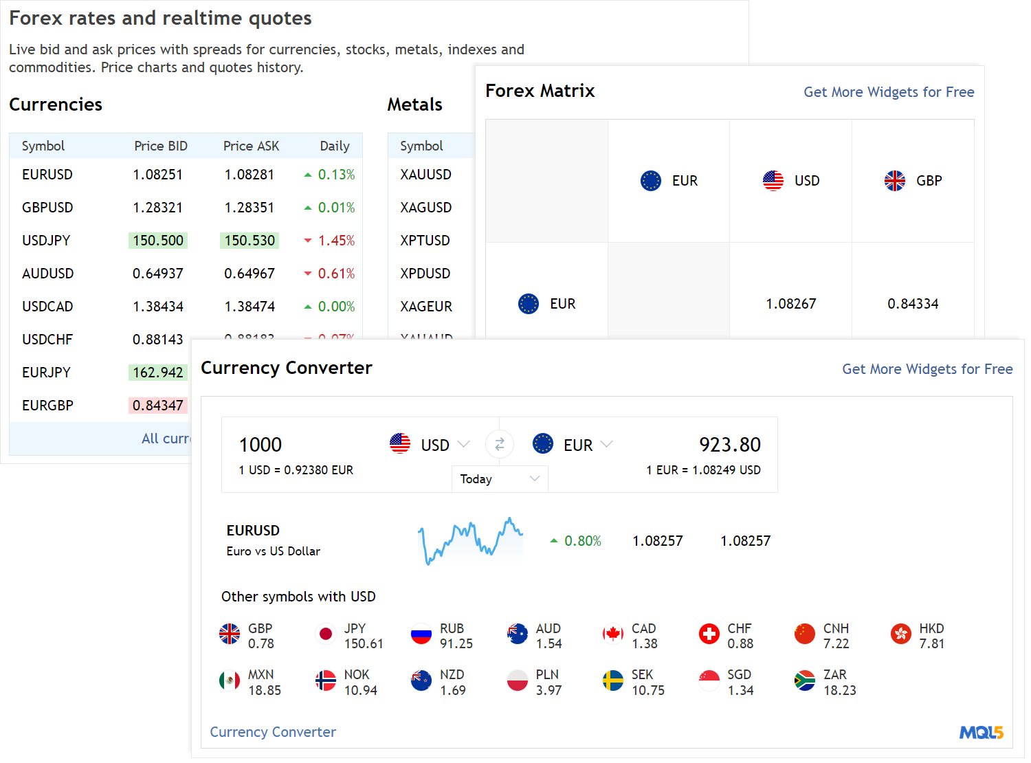 • 最常用货币的汇率展示,以了解不同地区的整体金融形势。
